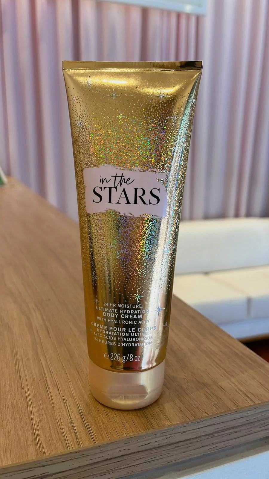 Body Lotion Manteiga Corporal In The Stars é uma mistura quente e cintilante de girassol, almíscar de sândalo, tangelo açucarado, agarwood branco e âmbar radiante.
