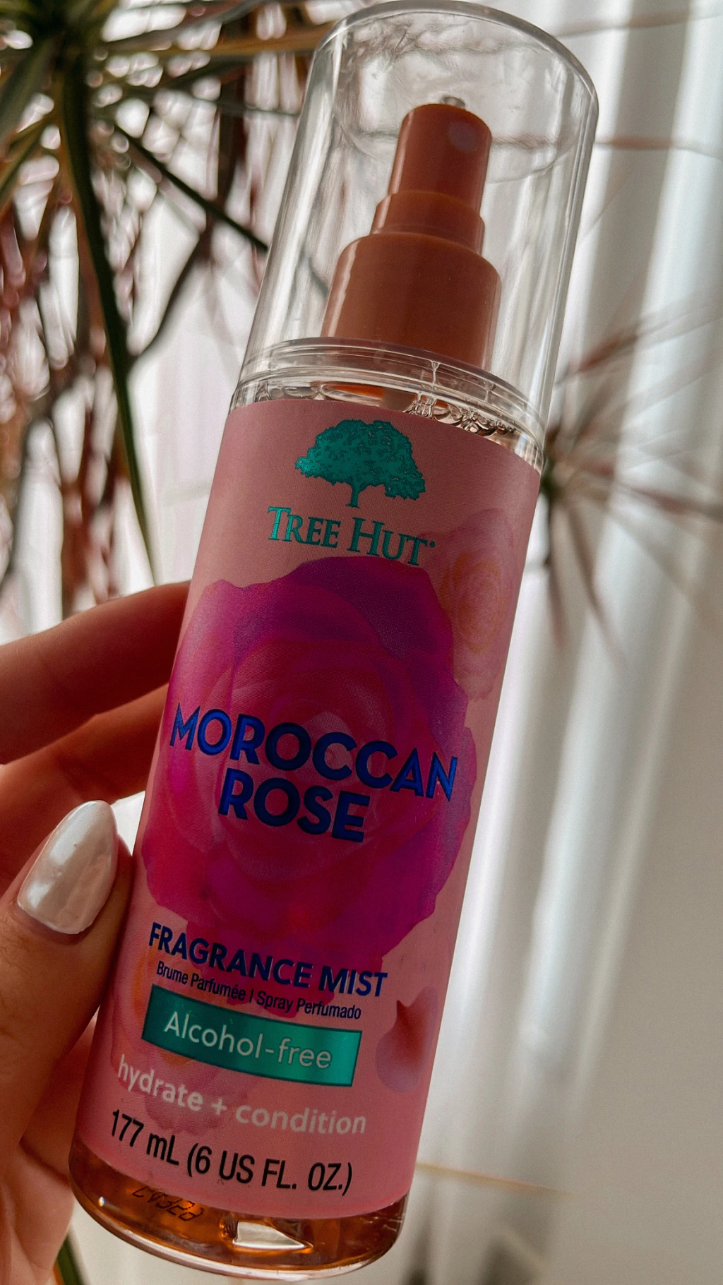 Finalize sua rotina de autocuidado com o Spray Floral de Rosa Marroquina da Tree Hut!