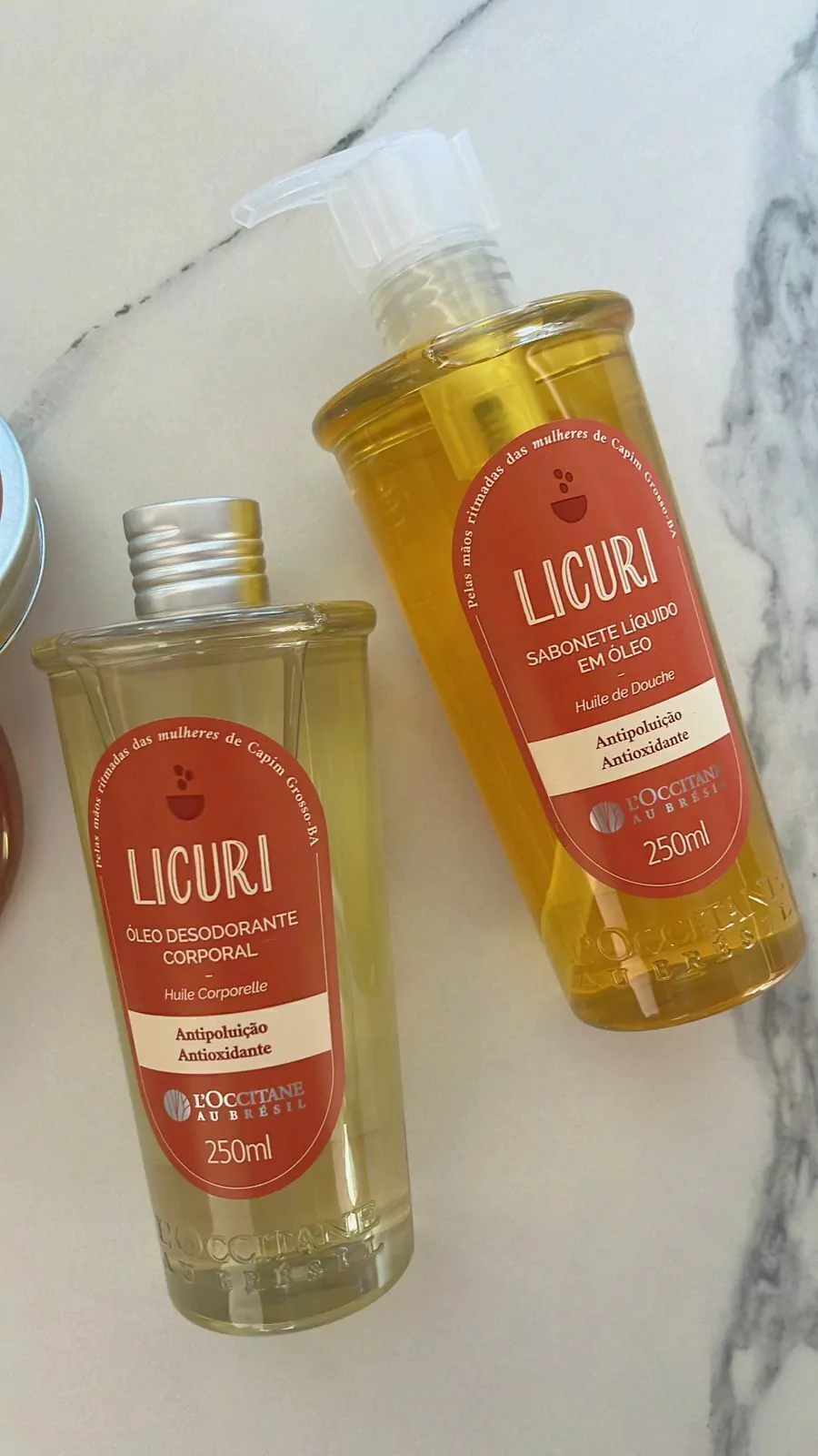 Sabonete Líquido em Óleo Licuri:Aplicar no corpo úmido, exceto rosto. Enxaguar em seguida.
