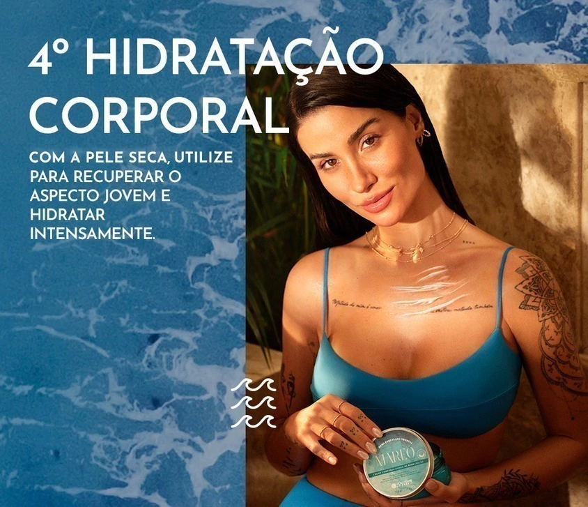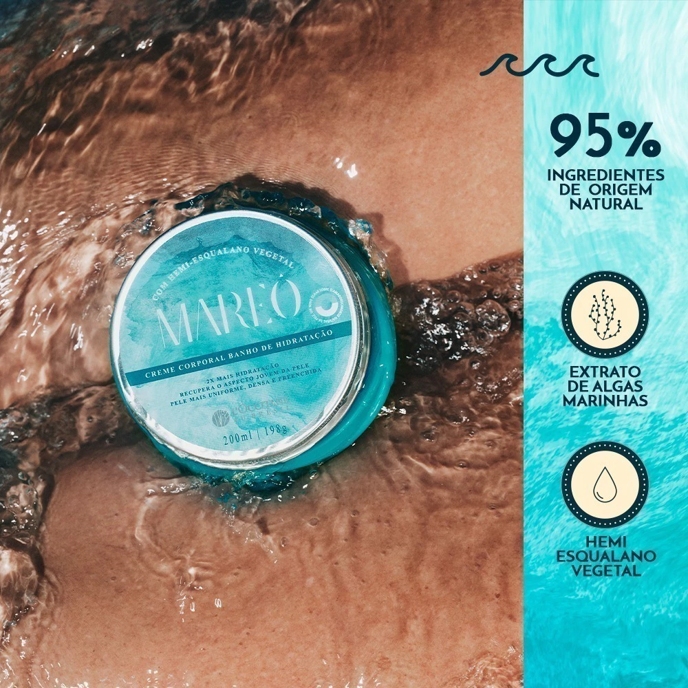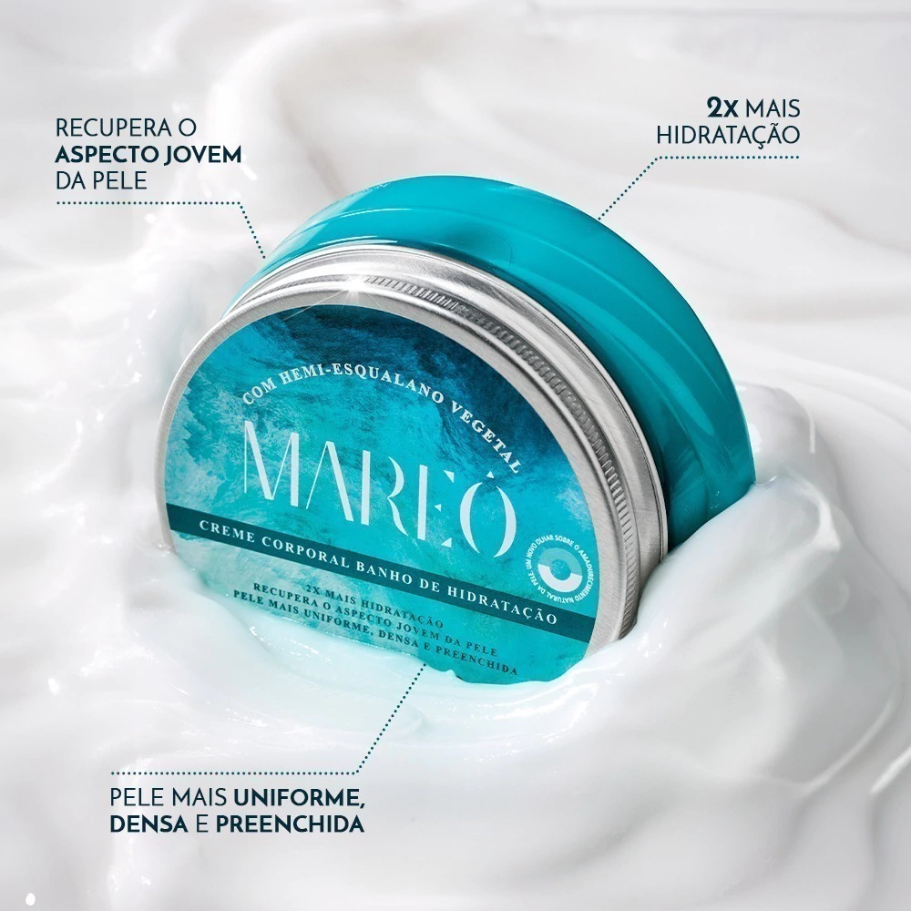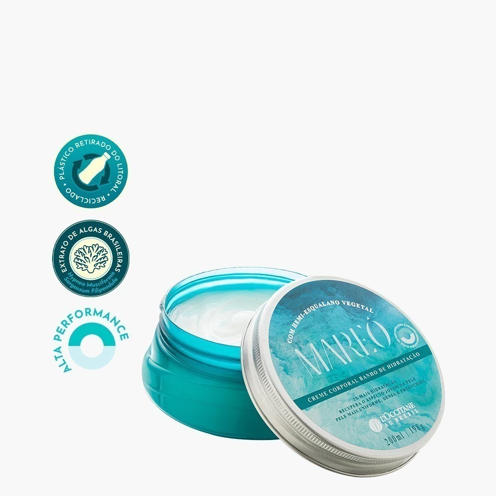 Inspirado no frescor de um banho de mar, este creme corporal que combina extrato de algas marinhas e hemi esqualano vegetal recupera o aspecto jovem, deixando a pele mais preenchida, densa e uniforme¹.