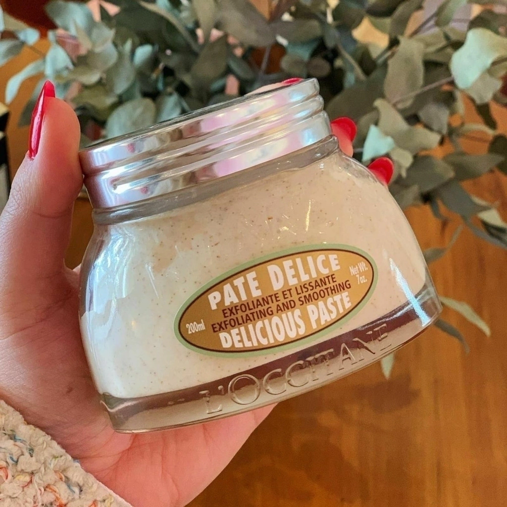 Com textura de manteiga corporal com cristais de açúcar e cascas de amêndoas, que se transformam num leite corporal quando em contato com a água: a esfoliação se torna um momento de pura doçura.