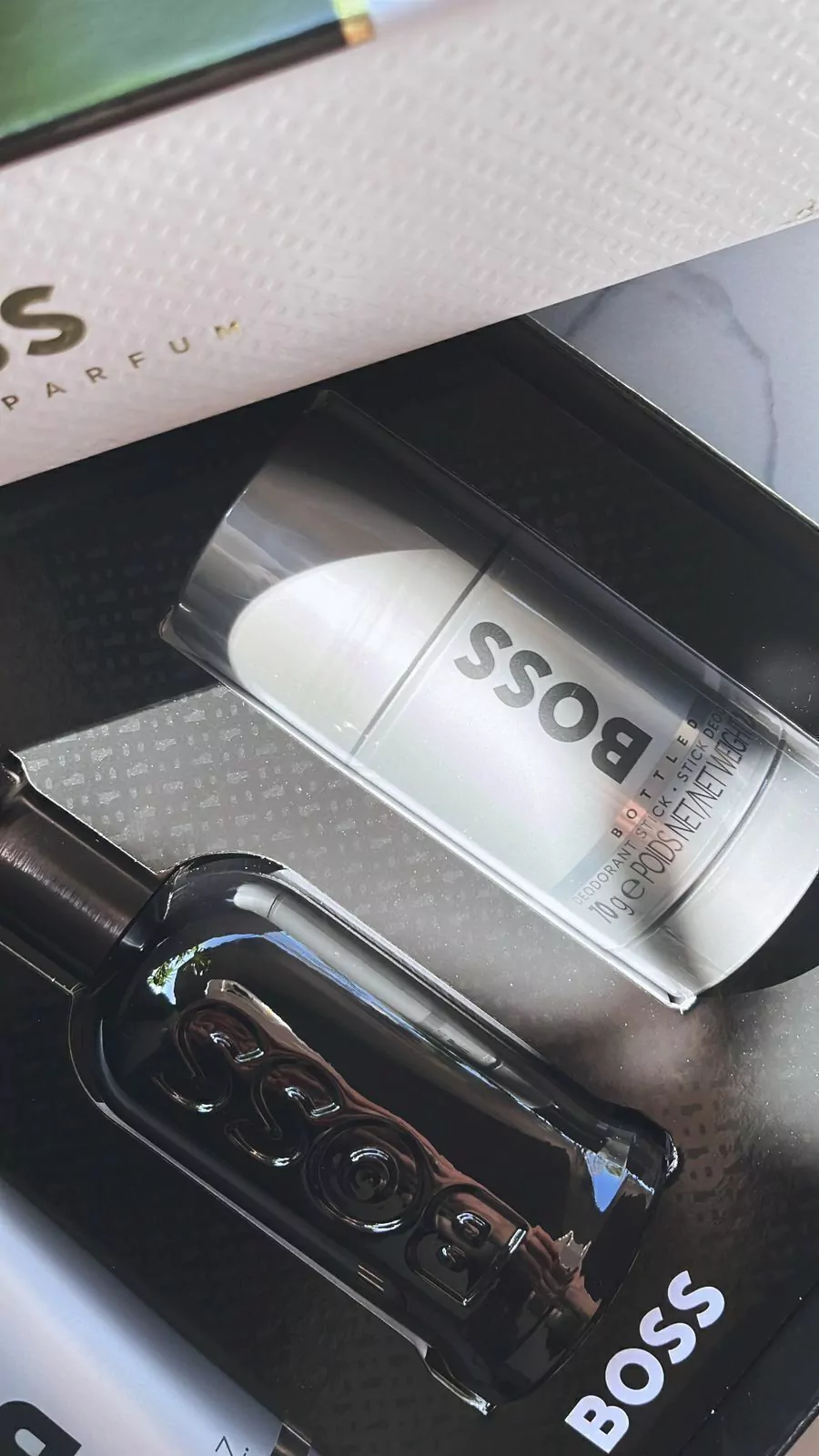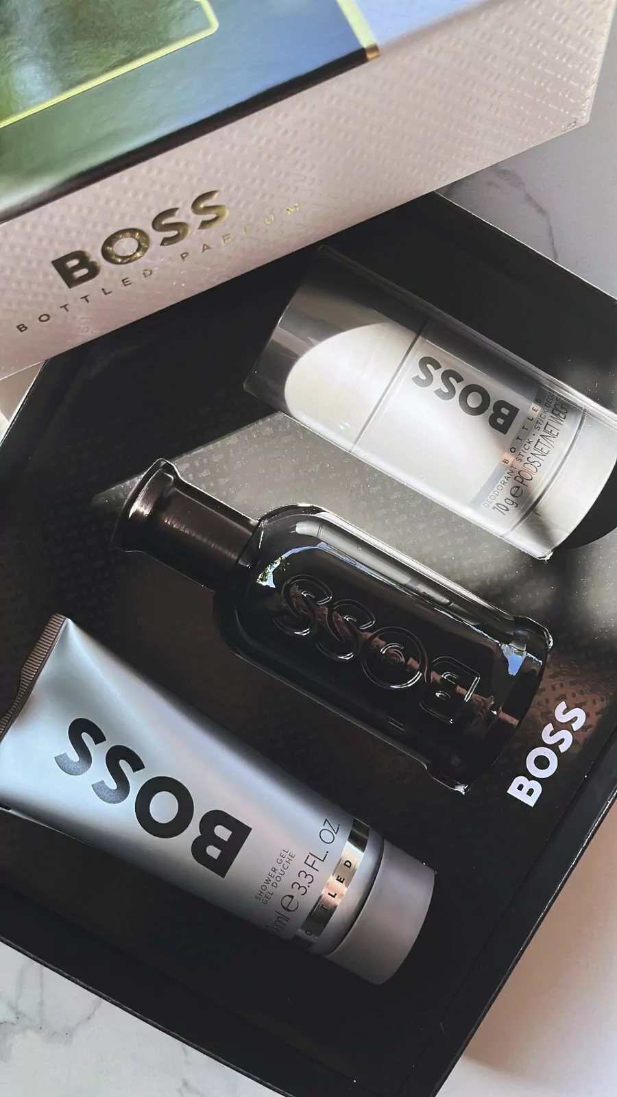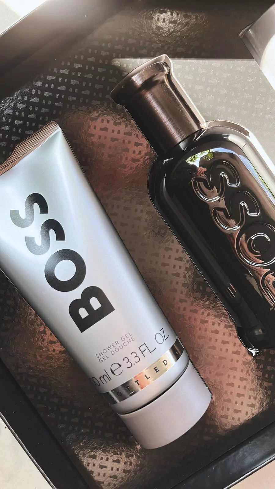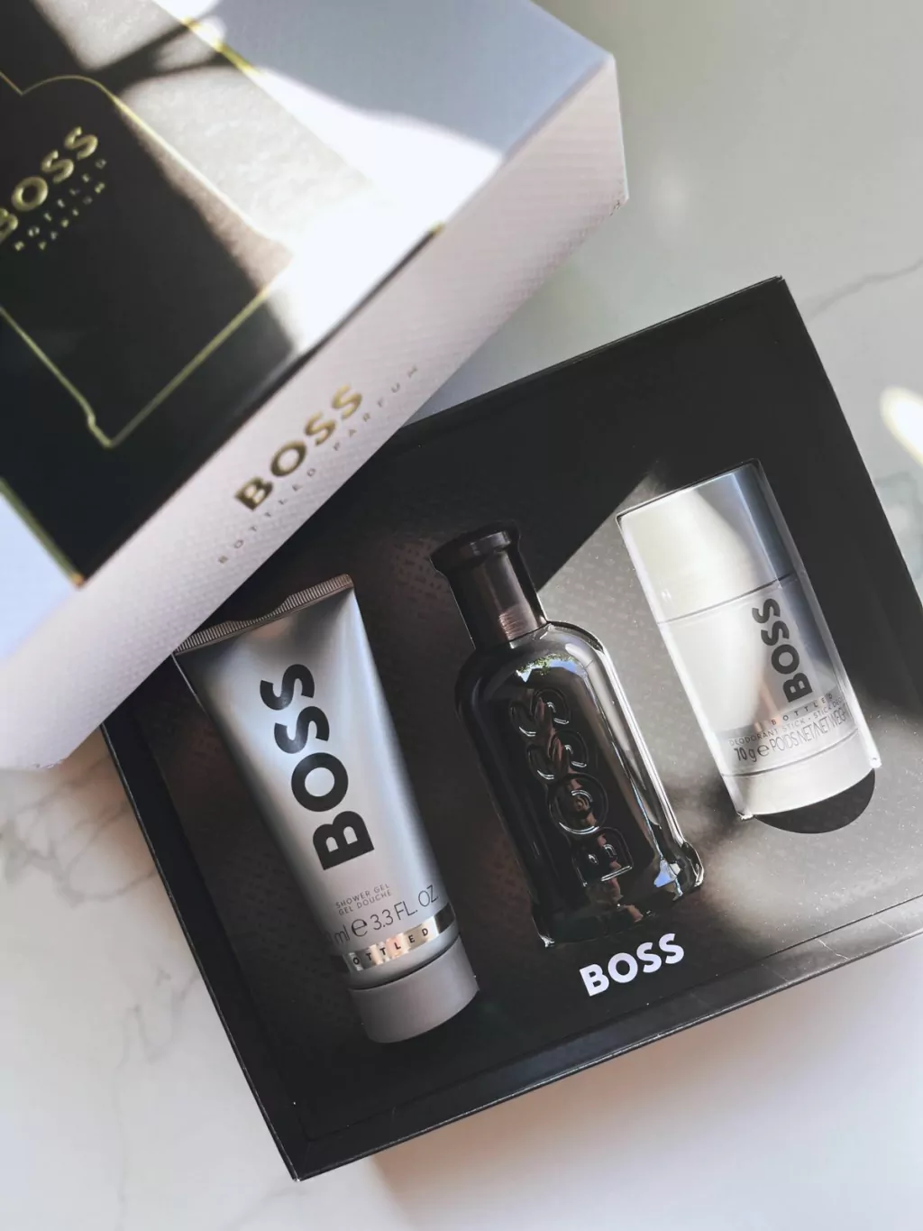 O Kit Contém 1 BOSS Bottled Parfum 100ml (3,3oz) 1 Gel de Banho Perfumado BOSS Bottled 100ml (3,3oz) 1 Bastão Desodorante BOSS Bottled para Homens 75ml (2,4oz).