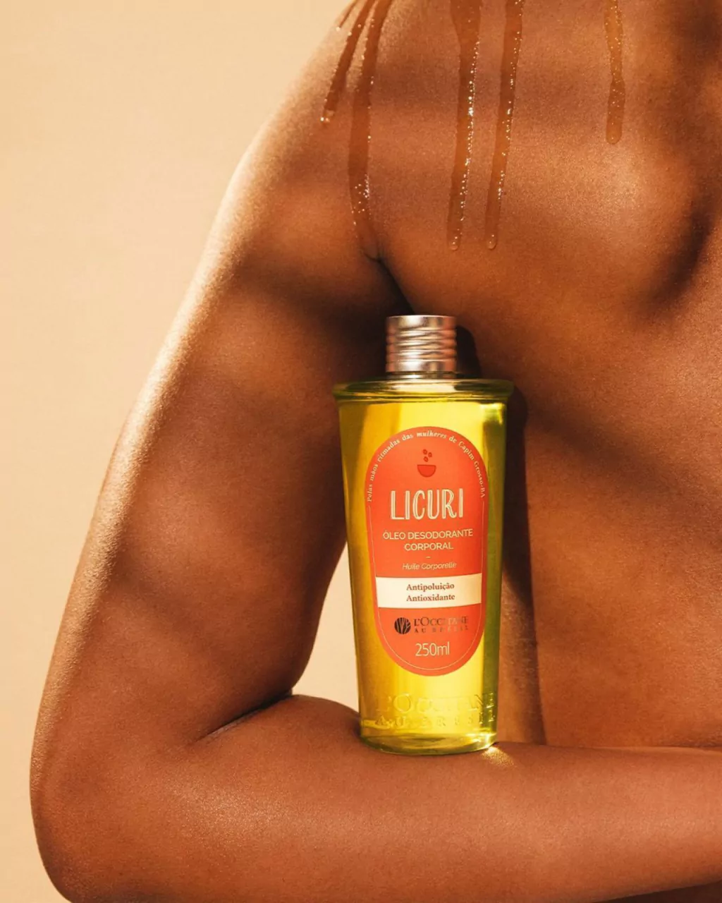 Óleo Desodorante Corporal da L’Occitane au Brésil é enriquecido com Licuri, um poderoso óleo 100% vegetal conhecido por hidratar e reparar a pele, formar uma barreira protetora contra a poluição do dia a dia, protegendo a pele contra radicais livres, decorrentes de agressões externas, e prevenindo o envelhecimento precoce.
