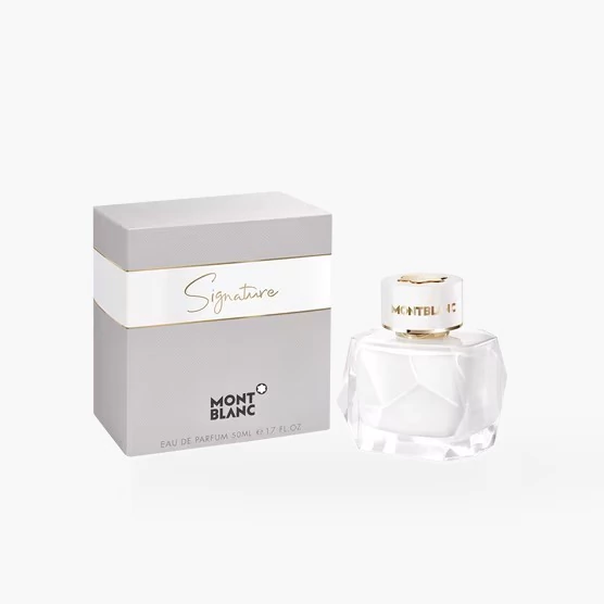 O perfume Montblanc Signature, disponível nos tamanhos de 30 ml, 50 ml e 90 ml, combina elementos das famílias olfativas floral, oriental e almiscarada.