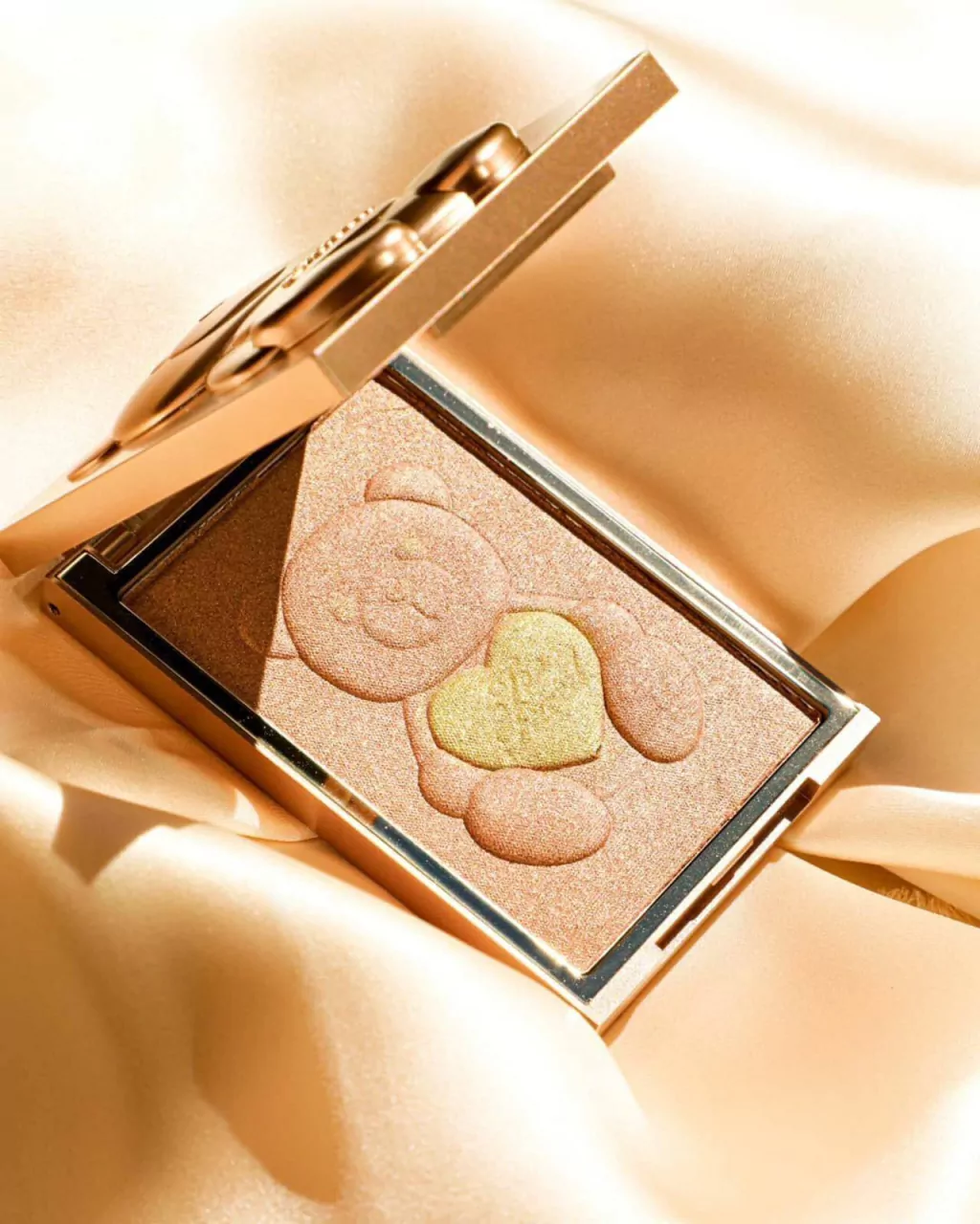 Aplique o Bronzer Teddy Bare ao longo das maçãs do rosto e do maxilar usando a técnica de asas de borboleta.