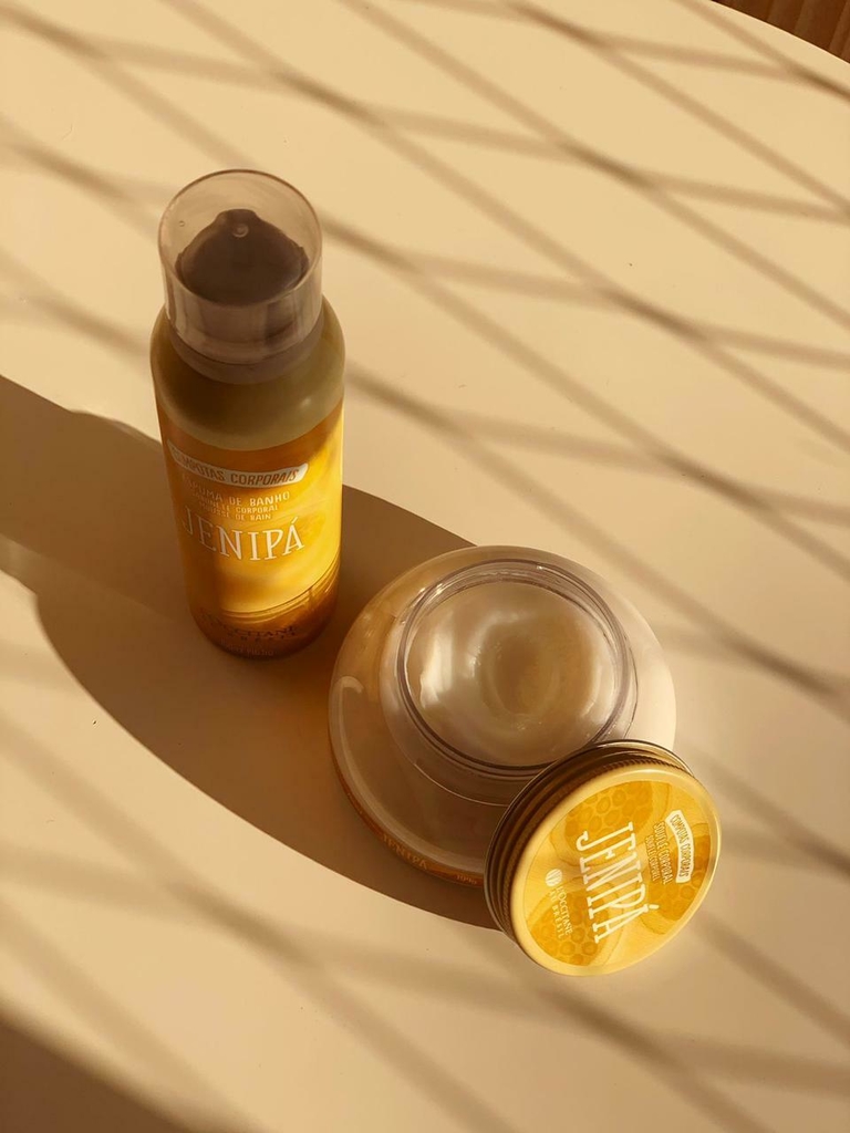 Com extrato de Jenipapo, esta espuma de banho sabonete corporal traz um momento sensorial para a limpeza da pele no banho. Inspirado na aparência dos doces de frutas em compotas, traz um momento sensorial no banho para uma esfoliação suave da pele.