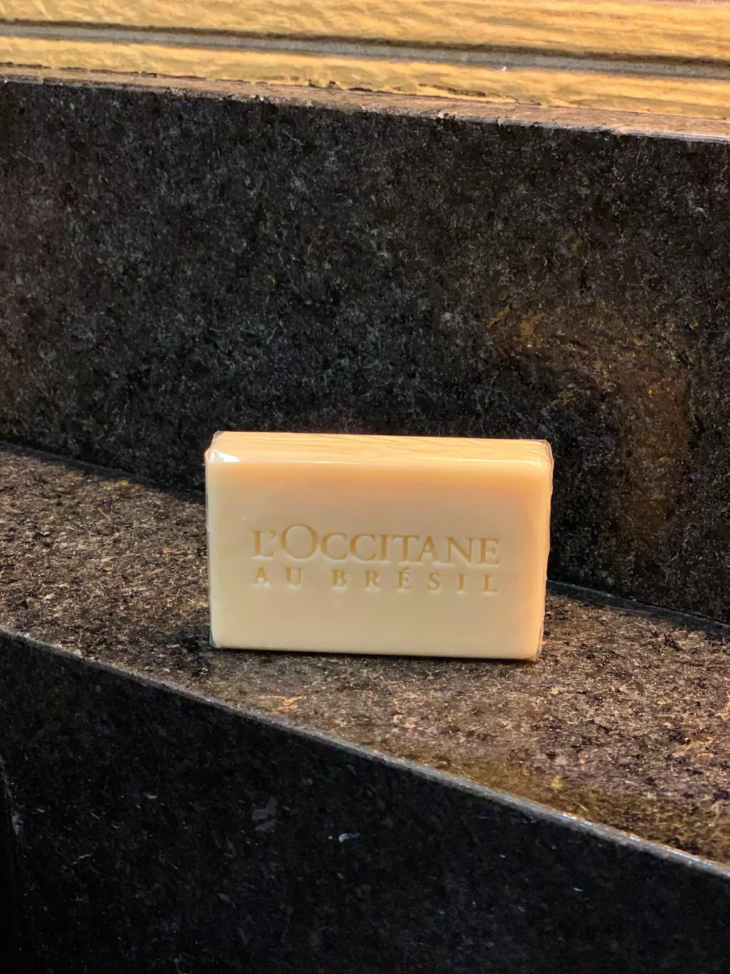 Este sabonete com base vegetal limpa suavemente as mãos e o corpo.