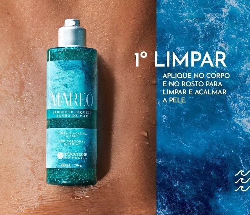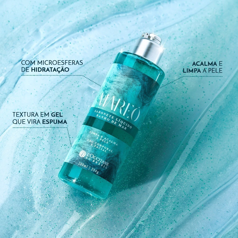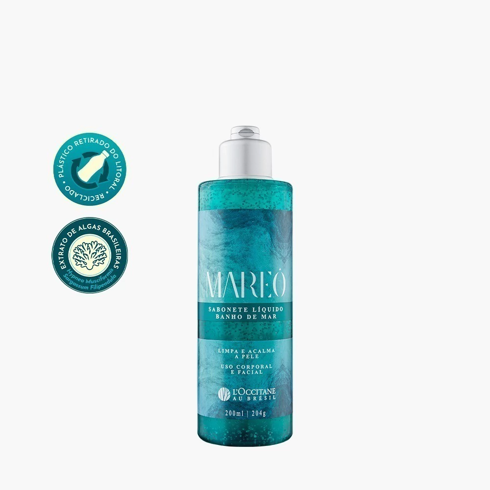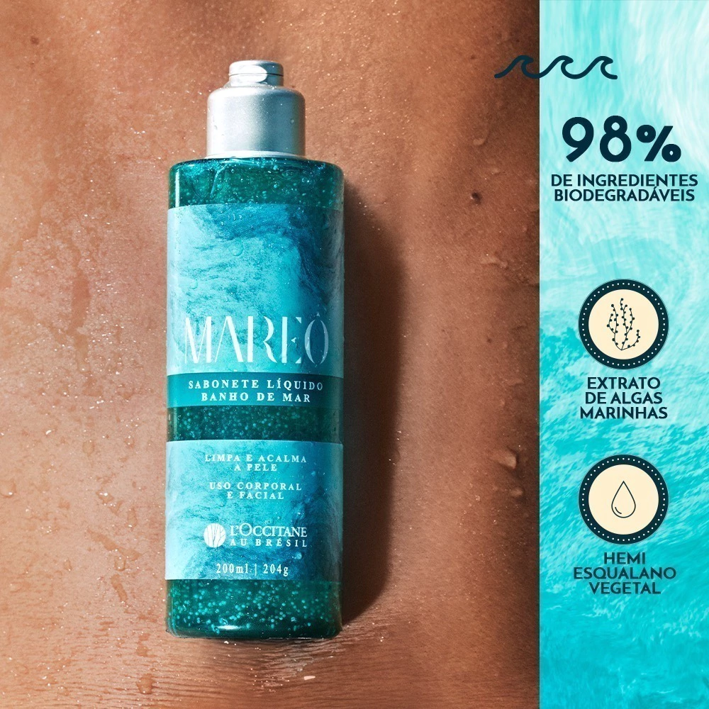 Inspirado no frescor de um mergulho no mar, este sabonete líquido com extrato de algas marinhas limpa sem agredir, além de acalmar a pele e manter sua hidratação natural.