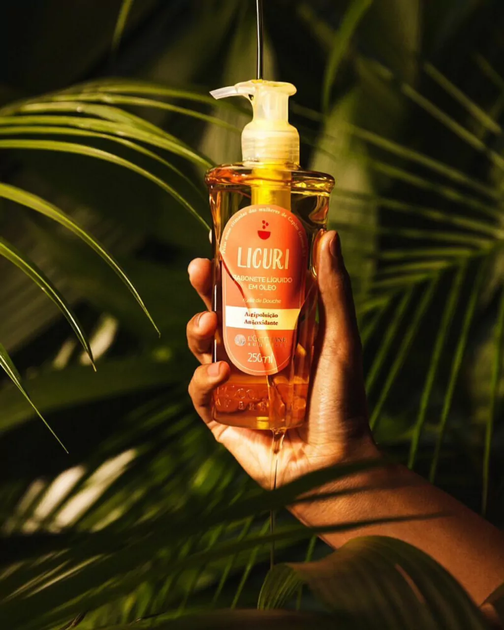 O Sabonete Líquido em Óleo Licuri limpa, hidrata e perfuma a pele, com uma textura em óleo envolvente, que se transforma em uma cremosa espuma quando entra em contato com a água.