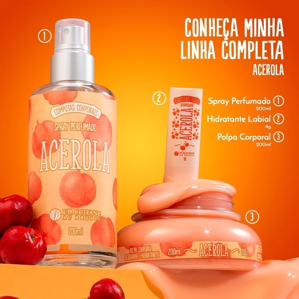 Inspirado nas fragrâncias da linha de compotas corporais, esta Deo Colônia Spray Perfumado Acerola