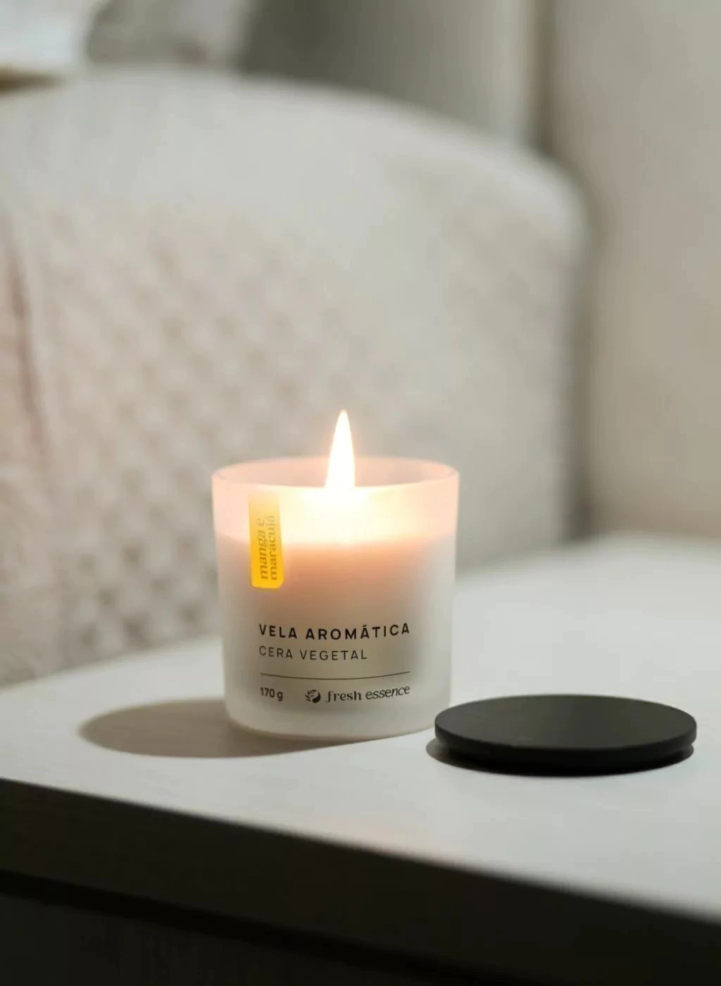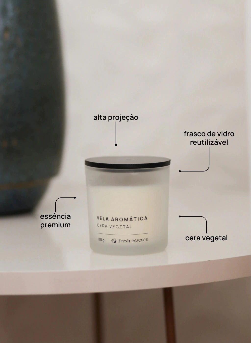 Composição: Blend de ceras 100% vegetais (palma e coco), essência premium e pavio de algodão.